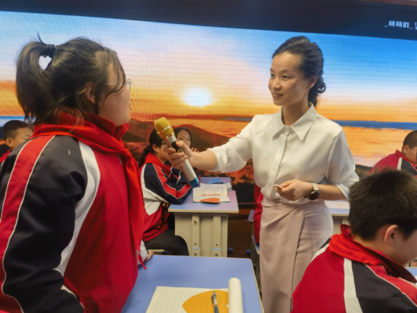少年強(qiáng),則國(guó)強(qiáng)。首先,李俊老師展示的是《厲害了,我的國(guó)!》主題班會(huì),她引導(dǎo)學(xué)生把自己的夢(mèng)想同祖國(guó)的命運(yùn)結(jié)合在一起,激勵(lì)學(xué)生逐夢(mèng)向未來,為實(shí)現(xiàn)偉大的中國(guó)夢(mèng)努力奮斗!上課伊始,李俊老師用一盒小小的“洋火”(火柴)導(dǎo)入,用富有啟發(fā)性的語言一次次激發(fā)學(xué)生的思維,充分調(diào)動(dòng)了學(xué)生學(xué)習(xí)的積極性,讓他們?cè)趯?duì)比中看到了祖國(guó)發(fā)生的翻天覆地的變化,從而有力地激發(fā)了學(xué)生的民族自豪感,同學(xué)們不禁嘖嘖贊嘆:厲害了,我的國(guó)!他們紛紛表示:要努力學(xué)習(xí),奮發(fā)向上,早日實(shí)現(xiàn)強(qiáng)國(guó)夢(mèng)。整節(jié)課振奮人心,感染力極強(qiáng)。