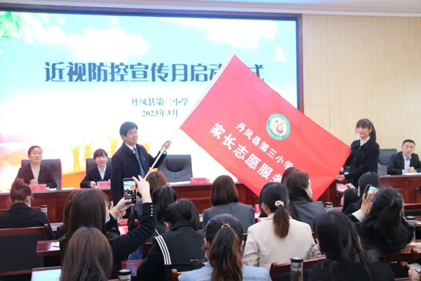 為了充分發(fā)揮家長服務(wù)學(xué)校的作用,會上還成立了丹鳳縣第三小學(xué)家長志愿服務(wù)隊(duì),辦公室主任石磊宣讀了服務(wù)隊(duì)組建方案,余新平親授隊(duì)旗,常方妍接旗。