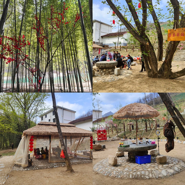 “雙喜園”以建設(shè)秦嶺山水鄉(xiāng)村,打造旬河生態(tài)康養(yǎng)旅游為主題,依托旬河藍(lán)天碧水、沙灘、柳林、竹林等自然風(fēng)景,加以人文要素的融合進(jìn)行建設(shè),按照“11443”建設(shè)模式,圍繞“黨建引領(lǐng)”一條主線,堅(jiān)持“回歸秦嶺山水自然”一個(gè)總原則,做好群眾需求、鄉(xiāng)土文化、生態(tài)旅游、產(chǎn)業(yè)增收“四個(gè)結(jié)合”,精心打造口袋公園、喜文化園、休閑游樂園、直播帶貨園“四園”。主園區(qū)面積20畝,分柳林燒烤區(qū)、沙灘親子區(qū)、竹排體驗(yàn)區(qū)和竹林漫步區(qū),并延伸公路沿線環(huán)境綜合整治一公里,實(shí)施民房改民宿、開辦農(nóng)家樂、電商直播帶貨站、喜事文化體驗(yàn)館建設(shè),是一個(gè)集群眾休閑、旅游觀光、鄉(xiāng)土文化體驗(yàn)、農(nóng)產(chǎn)品銷售等多功能于一體的生態(tài)旅游園。其中鄉(xiāng)土文化表演“劃旱船”、雙喜村村名故事、“洵美且異”石標(biāo)、“十喜十美”花墻、“龍泉鳳眼”、喜愿墻、太公釣、摸喜石等都飽含著濃濃的文化氣息。