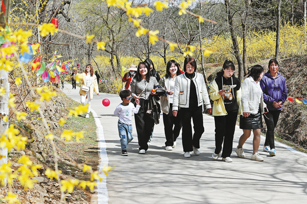 朵朵金黃的連翹花,不僅裝飾了山谷,成了當?shù)剞r(nóng)戶的“致富花”,也吸引了越來越多的游客前來觀賞,連翹谷成了遠近聞名的網(wǎng)紅打卡地。