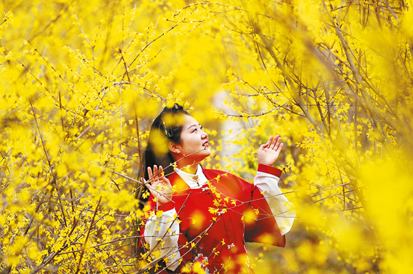 春風吹開千重錦,山花爛漫競芳菲。3月27日,在洛南縣靈口鎮(zhèn)五家溝村連翹谷,從四面八方趕來的游客在賞花游玩。