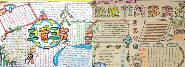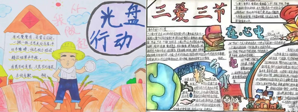 “學(xué)問勤中得,富裕儉中來?!蓖瑢W(xué)們通過繪畫、手抄報等多種方式將課堂所學(xué)進行轉(zhuǎn)換,分享自己對“三愛三節(jié)”的理解,并承諾自覺肩負起“以勤儉節(jié)約為榮,鋪張浪費為恥”的社會責(zé)任!