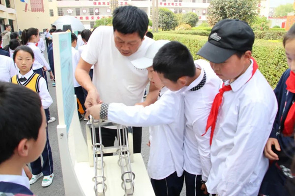科普助力“雙減”,科技引領未來。會后,陜西科技館“科普大篷車”駛入丹鳳縣第三小學,為全校師生送上一份有趣的“科普大餐”??破沾笈褴囀且蛔傲鲃拥目萍拣^”,每一件展品都是集科學性、知識性和趣味性為一體??萍忌衩氐臍庀⒘詈⒆觽兊那笾纱朔序v,科學夢想在此點亮。