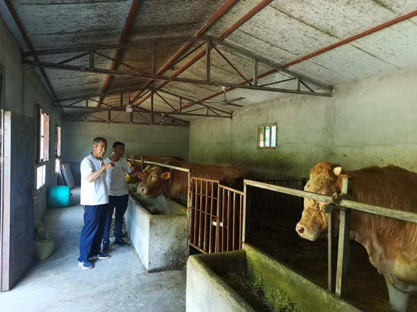 聯(lián)絡站站長石宏星與人大代表馬軍走訪群眾養(yǎng)牛場