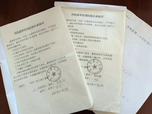 三是所有學(xué)生和家長簽訂了預(yù)防溺水承諾書,形成家校共育的良好氛圍。