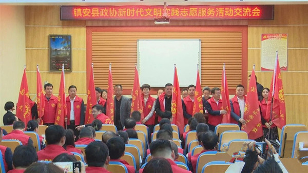 會(huì)上,楊清平向鎮(zhèn)安縣政協(xié)志愿服務(wù)隊(duì)授旗,龔英博向10個(gè)志愿服務(wù)小分隊(duì)授旗。