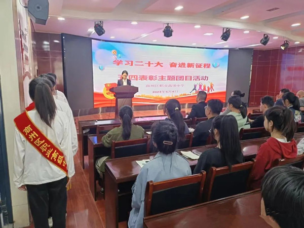 “五四”運(yùn)動(dòng)作為光輝的一幕永久地閃耀在中華民族的史冊(cè),“愛國(guó)、進(jìn)步、民主、科學(xué)”的五四精神不斷影響和激勵(lì)著一代又一代的年輕人奔向光明。為了引導(dǎo)和激勵(lì)學(xué)生傳承“五四”精神,堅(jiān)定理想信念,厚植愛國(guó)主義情懷,5月4日下午,商州區(qū)職業(yè)高級(jí)中學(xué)團(tuán)委隆重舉行“學(xué)習(xí)二十大,奮進(jìn)新征程”—— 慶“五四”表彰暨新團(tuán)員入團(tuán)儀式。