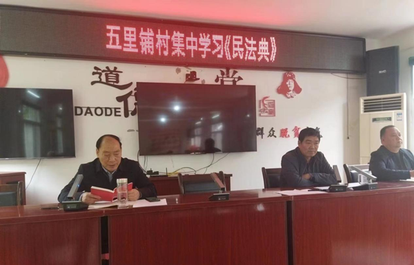 接著,開展了干部作風提升專題研討,會上駐村干部、村兩委帶頭發(fā)言,其他黨員依次發(fā)言,圍繞主題以及學習內容,結合本職工作,談思想感悟;副書記陳樹祥組織大家開展五里鋪村5月份遠程教育集中學習;駐村工作隊長段開宏,領學了《民法典》中農民權益保護方面的知識;監(jiān)委會主任胡海霞傳達學習城關街道基層黨建業(yè)務培訓會會議精神,對發(fā)展黨員、黨內組織生活知識做了淺顯易懂的講解。