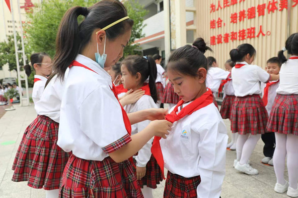 為深入學(xué)習(xí)貫徹落實(shí)習(xí)近平總書記關(guān)于少年兒童和少先隊(duì)工作的重要指示精神,貫徹落實(shí)團(tuán)中央、教育部、全國少工委印發(fā)的《關(guān)于構(gòu)建階梯式成長激勵(lì)體系增強(qiáng)少先隊(duì)員光榮感的指導(dǎo)意見》,以增強(qiáng)少先隊(duì)員光榮感為中心任務(wù),從源頭培養(yǎng)少先隊(duì)員的光榮感和組織歸屬感,5月17日下午,商南縣城關(guān)小學(xué)組織一年級全體師生在操場隆重舉行一年級首批新隊(duì)員入隊(duì)儀式。