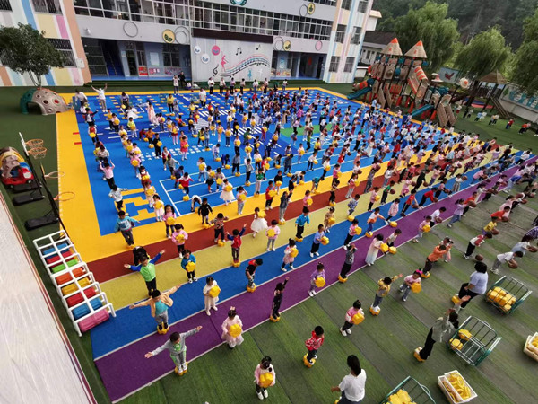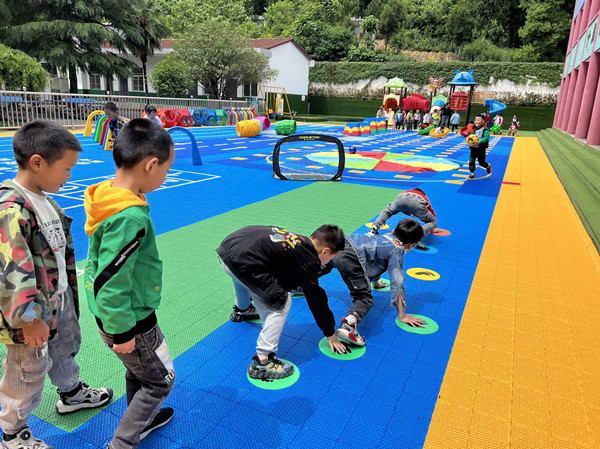 “過(guò)去我們幼兒園操場(chǎng)時(shí)間長(zhǎng)了,下雨天容易積水,孩子們?cè)谏厦嫱嫠H菀谆沟鴤P虏賵?chǎng)建好后,孩子們?cè)谏厦嫱嫠?、做游戲、認(rèn)識(shí)數(shù)字、辨別顏色,既保證了孩子的安全,也拓展了兒童的視野”。過(guò)風(fēng)樓鎮(zhèn)中心幼兒園園長(zhǎng)豐漢朝說(shuō)。(代緒剛 胡陽(yáng)林 吳宏偉)