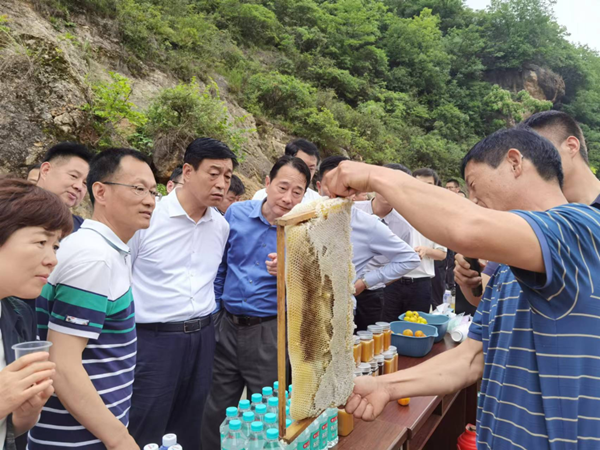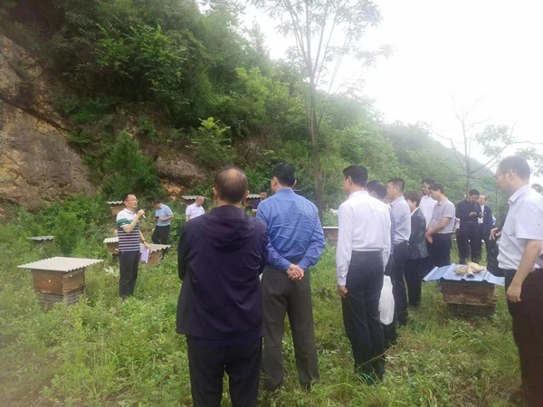 在土蜂蜜產(chǎn)業(yè)扶貧基地,駐村干部鞏曉濱介紹到,“2019年6月,浦發(fā)銀行西安分行由延安吳起轉(zhuǎn)戰(zhàn)到后坪村,實現(xiàn)當(dāng)年駐村,當(dāng)年見效,直接投入現(xiàn)金50萬元,打造三大支柱產(chǎn)業(yè),其中后坪村土蜂蜜產(chǎn)業(yè)是三大產(chǎn)業(yè)之一。目前全村土蜂蜜養(yǎng)殖由原來的不足100箱,發(fā)展到現(xiàn)在的1000箱,年產(chǎn)量由原來的300斤發(fā)展現(xiàn)在的4000斤,產(chǎn)值達(dá)到32萬元。當(dāng)初,很多養(yǎng)殖戶由于不懂技術(shù)造成土蜂蜜不明原因流失,通過浦發(fā)銀行聘請陜西省蜂蜜養(yǎng)殖首席科學(xué)家王黎九州教授全程培訓(xùn)指導(dǎo),目前全村養(yǎng)殖戶都學(xué)會了管理蜂王,而且養(yǎng)殖大戶張振峰還學(xué)會了造蜂王”。