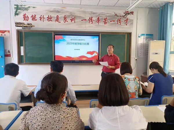 此次教學能力比賽,學校領導高度重視,成立了領導組織機構(gòu),制定并公示校賽方案。由教導處牽頭組織,教研室配合實施。經(jīng)過前期各校區(qū)各教研組選拔推薦,對標市賽規(guī)則,賽前對報名的7個參賽團隊進行了資格審核,通過現(xiàn)場比賽,共推選出5支優(yōu)秀團隊參加市級比賽。比賽按照參賽團隊報名順序開展8—10分鐘的現(xiàn)場展示,現(xiàn)場說組隊介紹、說教學設計、說教學實施報告、說教學評價與反思。評委現(xiàn)場點評賦分,并提出改進意見和建議。希望賽出的各團隊學深悟透大賽方針政策,注意細節(jié),細致打磨教學方案和教學視頻,以更清晰的思路撰寫實施報告,爭取在市賽中取得好成績。