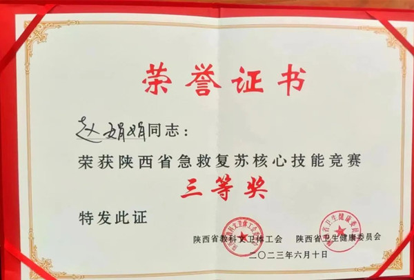 6月10日,由陜西省教科文衛(wèi)體工會(huì)和陜西省衛(wèi)生健康委員會(huì)舉辦的“2023年陜西省急救復(fù)蘇核心技能競(jìng)賽”在西安舉行。參賽團(tuán)隊(duì)包括西安交大一附院、西安交大二附院、漢中市中心醫(yī)院、安康市中心醫(yī)院、渭南市中心醫(yī)院、商洛市中心醫(yī)院等23支代表隊(duì),經(jīng)過(guò)激烈角逐,商洛市中心醫(yī)院代表隊(duì)榮獲優(yōu)秀團(tuán)隊(duì)獎(jiǎng),護(hù)士趙娟娟榮獲個(gè)人三等獎(jiǎng)。