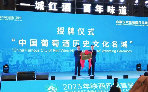 6月18日,在“一城紅酒,百年味道”2023年陜西丹鳳首屆紅酒節(jié)啟幕儀式暨中國陜西丹鳳葡萄酒產(chǎn)業(yè)推介會(huì)上,丹鳳縣被中國酒業(yè)協(xié)會(huì)授予中國葡萄酒歷史文化名城稱號(hào)。