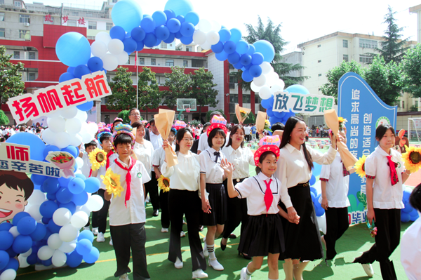 全體老師和畢業(yè)生們穿過“畢業(yè)門”