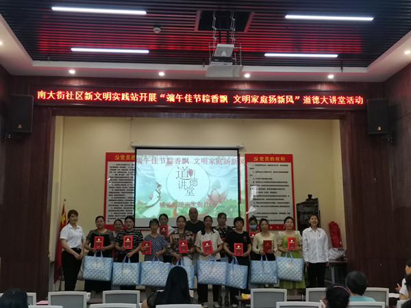 為傳承中華民族優(yōu)秀文化,弘揚家庭美德,注重家庭家教家風(fēng)建設(shè),推動新時代文明實踐活動走深走實,6月20日下午,商南縣城關(guān)街道辦南大街社區(qū)新文明實踐站開展了“端午佳節(jié)粽香飄·文明家庭揚新風(fēng)”道德大講堂活動,和社區(qū)居民一道共話端午,同慶佳節(jié)。