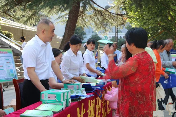 縣政府副縣長黃博向現(xiàn)場群眾發(fā)放宣傳資料,認(rèn)真解答群眾提出的自然資源相關(guān)問題,將現(xiàn)場活動推向了高潮。