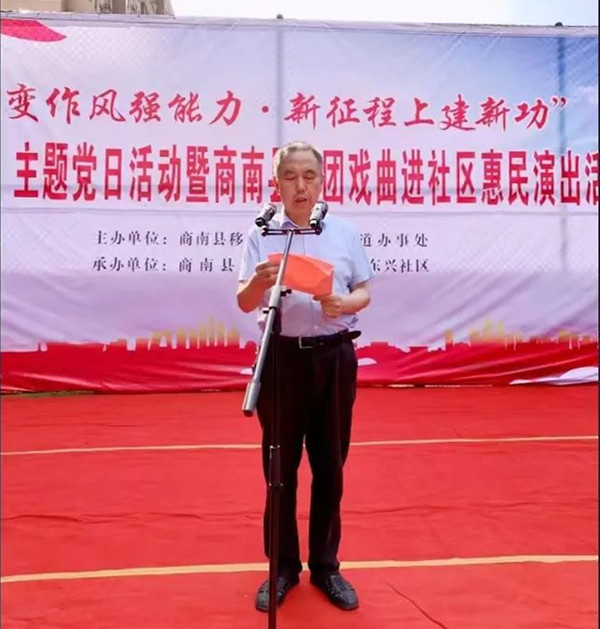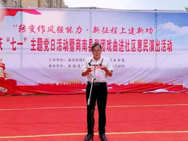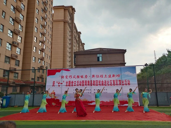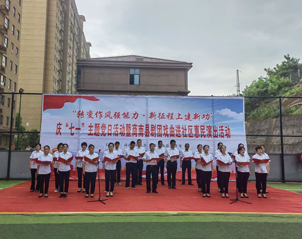 為深入貫徹落實(shí)習(xí)近平新時(shí)代中國特色社會(huì)主義思想和黨的二十大精神,慶祝中國共產(chǎn)黨成立102周年,回顧黨的百年光輝歷程,頌揚(yáng)黨的豐功偉績,豐富轄區(qū)居民精神文化生活,6月25日下午,商南縣城關(guān)街道東興社區(qū)聯(lián)合商南縣移民辦、商南縣劇團(tuán)、城關(guān)街道辦事處、城關(guān)街道派出所舉辦“轉(zhuǎn)變作風(fēng)強(qiáng)能力 新征程上建新功”慶“七一”主題黨日活動(dòng)。