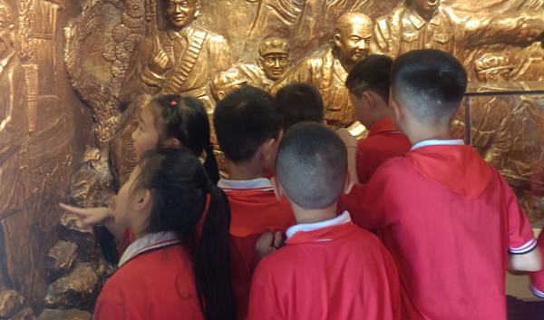 在研學(xué)活動現(xiàn)場,同學(xué)們通過聆聽導(dǎo)游的講解,在一個個紅色故事中,了解革命先輩的英雄事跡,深切感受革命先烈們不屈不撓、浴血奮戰(zhàn)的革命精神。