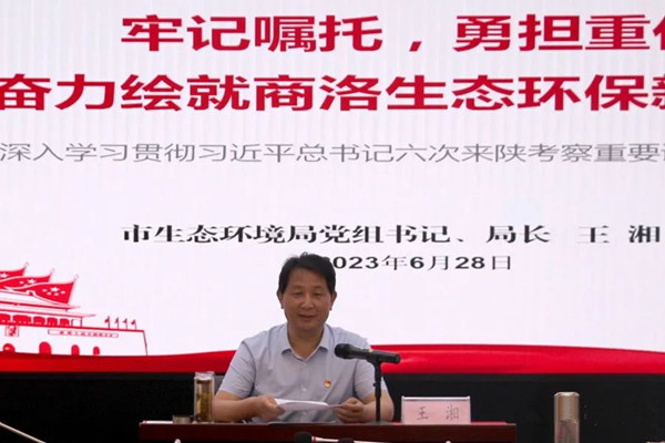 王湘要求,全系統(tǒng)要把習(xí)近平總書(shū)記歷次來(lái)陜考察重要講話重要指示精神貫通起來(lái),深刻理解習(xí)近平總書(shū)記重要講話的重大意義、核心要義,深刻感悟習(xí)近平新時(shí)代中國(guó)特色社會(huì)主義思想的強(qiáng)大真理力量和實(shí)踐偉力,自覺(jué)用以統(tǒng)一思想、統(tǒng)一意志、統(tǒng)一行動(dòng)。要大力弘揚(yáng)偉大建黨精神和延安精神,努力在以學(xué)鑄魂、以學(xué)增智、以學(xué)正風(fēng)、以學(xué)促干上見(jiàn)實(shí)效。要全面對(duì)標(biāo)落實(shí)“著力推動(dòng)發(fā)展方式綠色低碳轉(zhuǎn)型、提升生態(tài)文明建設(shè)水平”的重要要求,扎實(shí)踐行習(xí)近平生態(tài)文明思想,扎實(shí)落實(shí)污染防治攻堅(jiān)戰(zhàn)各項(xiàng)工作要求,打好藍(lán)天、碧水、凈土保衛(wèi)戰(zhàn),持續(xù)改善全市生態(tài)環(huán)境質(zhì)量,以商洛生態(tài)文明建設(shè)新成效展現(xiàn)中國(guó)式現(xiàn)代化的無(wú)比優(yōu)越性和強(qiáng)大生命力。