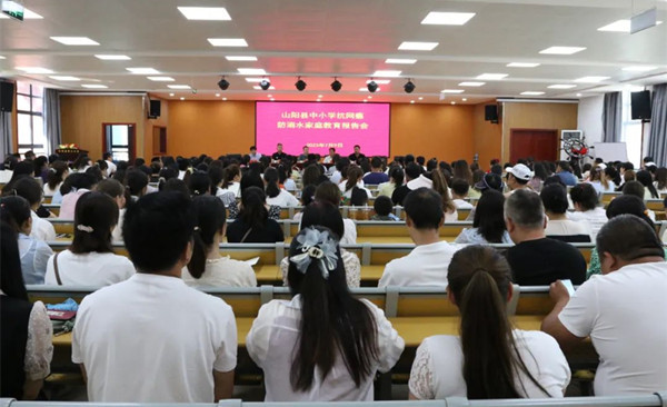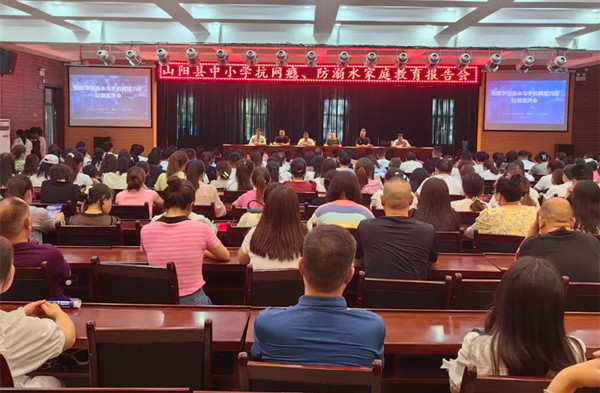 為了家校攜手有效預(yù)防學(xué)生“網(wǎng)游”成癮問題,防范學(xué)生“溺水”事故發(fā)生,山陽縣科教局特邀陜西行一科技教育有限責(zé)任公司“抗網(wǎng)癮·防溺水”資深教育專家朱琦團(tuán)隊(duì),深入各校開展針對性教育報(bào)告會(huì)。7月9日,在山陽縣第三小學(xué)和第一初級(jí)中學(xué)開展了兩場報(bào)告會(huì)。報(bào)告會(huì)通過抖音全程直播線上線下同時(shí)進(jìn)行的方式開展,現(xiàn)場家長、教職工約650人參加,線上5.9萬名學(xué)生家長參加。報(bào)告會(huì)由山陽科教局副局長李永東主持。