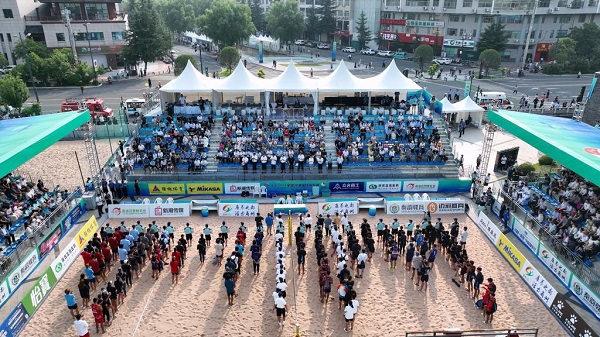 圖為2023全國沙灘排球錦標(biāo)賽開幕式現(xiàn)場。