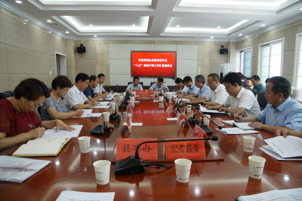 8月16日,市委“八五”普法中期督查評(píng)估第二督查組在市人大常委會(huì)副主任、市委普法工作領(lǐng)導(dǎo)小組副組長(zhǎng)李旭光的帶領(lǐng)下一行5人到我縣開(kāi)展“八五”普法中期督查評(píng)估工作??h委常委、政法委書(shū)記、縣委普法工作領(lǐng)導(dǎo)小組組長(zhǎng)李福軍,縣人大常委會(huì)副主任孫曉紅,縣政府副縣長(zhǎng)、公安局局長(zhǎng)秦立爭(zhēng)等陪同督查評(píng)估并參加匯報(bào)座談會(huì)。