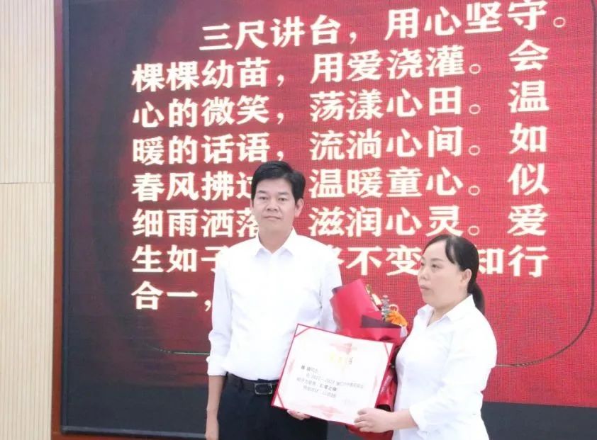 他是一位教育老兵,一片癡心行走在教壇之上。勤懇踏實,不辭勞苦,默默耕耘是他的準則,學(xué)生們點滴成長是他快樂的源泉,服務(wù)師生是他工作的動力;后勤管理有條不紊、年級工作率先垂范,他用行動詮釋了教師的真諦。校級領(lǐng)導(dǎo)為六位“最美教師”致頒獎詞并頒發(fā)了榮譽證書和鮮花。并號召所有老師以他們?yōu)榘駱樱ぞI(yè)業(yè),踏實肯干,爭取來年有更多的老師能被評為“最美教師”。