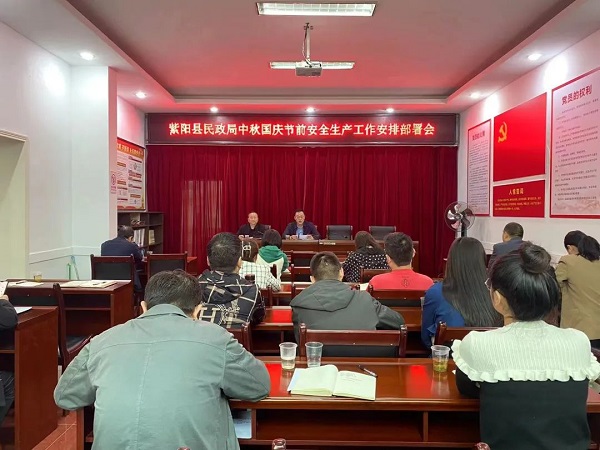 為全力保障中秋、國慶假日期間民政系統(tǒng)安全穩(wěn)定,紫陽縣民政局召開中秋國慶節(jié)前安全生產(chǎn)工作安排部署會。