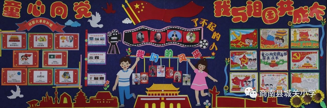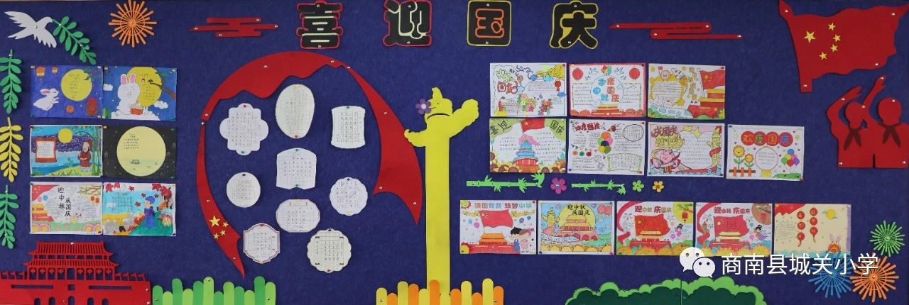 瑞雨收,畫(huà)楓潛,金秋十月迎國(guó)慶,教室新顏展班風(fēng)。為慶祝第74個(gè)國(guó)慶節(jié),商南縣城關(guān)小學(xué)的樂(lè)善學(xué)子們用靚麗的色彩表達(dá)著對(duì)祖國(guó)的深情,把熾熱的愛(ài)國(guó)熱情,融進(jìn)文化墻中。各班的風(fēng)格不同,卻一樣地承載著孩子們對(duì)盛世中國(guó)的祝福,為他們的精心設(shè)計(jì)和愛(ài)國(guó)情懷點(diǎn)個(gè)贊吧!