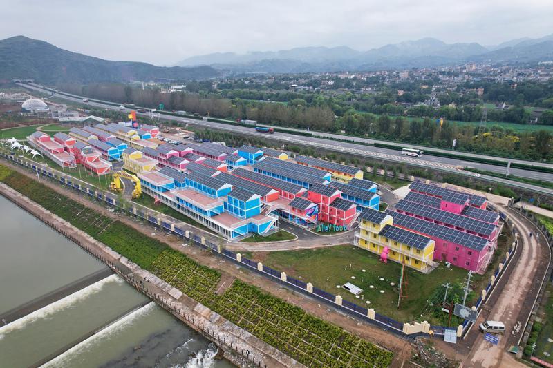 10月10日,走進(jìn)丹鳳縣棣花三產(chǎn)融合示范園項(xiàng)目建設(shè)現(xiàn)場,露營研學(xué)基地內(nèi)五彩繽紛的客房引人注目,工人正在一旁鋪設(shè)草坪,進(jìn)行最后的收尾工作;田園客廳區(qū)域,幾名工人正在安裝外圍玻璃;葡萄星球國際酒莊內(nèi)部,工人們一絲不茍地粉刷墻面……處處呈現(xiàn)出一派繁忙的建設(shè)景象。