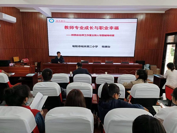陜西省名師工作室主持人楊居臺從“愛中前行,擁有博愛情懷;愛中筑夢,擁有人生夢想;愛中修煉,擁有文化品味;愛中包容,擁有做人格局”四個維度,作了《教師專業(yè)成長與職業(yè)幸福》專題講座。