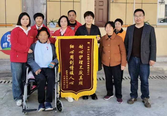 近日,城固縣魏盛和的妻子周玉潔、兒子魏國(guó)東將一面寫有“耐心護(hù)理不厭其煩、細(xì)心周到情暖人心”的錦旗送到了洋縣頤天老年公寓中核21社區(qū)頤天養(yǎng)老服務(wù)中心,以表感謝之情。