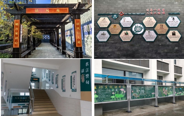 “惟信可以助廉,惟恕可以成德?!薄靶撵`同儀態(tài)并美,品德與學(xué)業(yè)兼優(yōu)?!弊哌M(jìn)紫陽縣校園內(nèi),隨處可見的廉潔文化警句和一個(gè)個(gè)圖文并茂、富有警示意義的廉潔小故事映入眼簾,讓人深受廉潔文化熏陶。紫陽中學(xué)將清廉元素“嵌”入校園小花園中,建成了以主題雕塑、文化墻、文化亭、園林為清廉文化載體的“清風(fēng)苑”;毛壩中學(xué)將“廉言廉語”以圖文并茂的形式與學(xué)校道路、綠植園、墻面、路燈等有機(jī)融合,形成頗具特色的“一路”“一墻”“八園”“九燈”廉潔文化矩陣;向陽鎮(zhèn)中心學(xué)校精心構(gòu)思,將“習(xí)近平總書記論廉”“典籍里的清廉”“名言警句話清廉”“清廉在身邊”作為四大廉潔文化板塊融入學(xué)校樓道中,形成“清廉文化走廊”,主題鮮明,內(nèi)涵豐富。