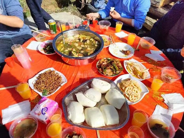 一桌桌簡單的農(nóng)家菜,圍坐一桌的人們你一言、我一語,訴說著家長里短,臉上洋溢著幸福的笑容。此次聚餐的組織者是該村村民佳豪農(nóng)民專業(yè)合作社負(fù)責(zé)人冉龍軍和董少軍,他們倆多次給鎮(zhèn)村聯(lián)系,表示要為村民組織一次大聚餐。今天一大早社員們就開始?xì)⒇i,并購置回來蔬菜、魚等食材,精心制作菜肴,村里的人也早早到達(dá)現(xiàn)場,幫忙摘菜、洗菜,共同完成了此次聚餐。一直以來,合作社就是通過這一樁樁、一件件的小事,讓大家感受到了合作社真心實意為老百姓干實事、謀福利,村民看到、得到、享受到了真正的實惠,大家的心越來越齊,干事創(chuàng)業(yè)的勁頭越來越足,日子也就越過越紅火。