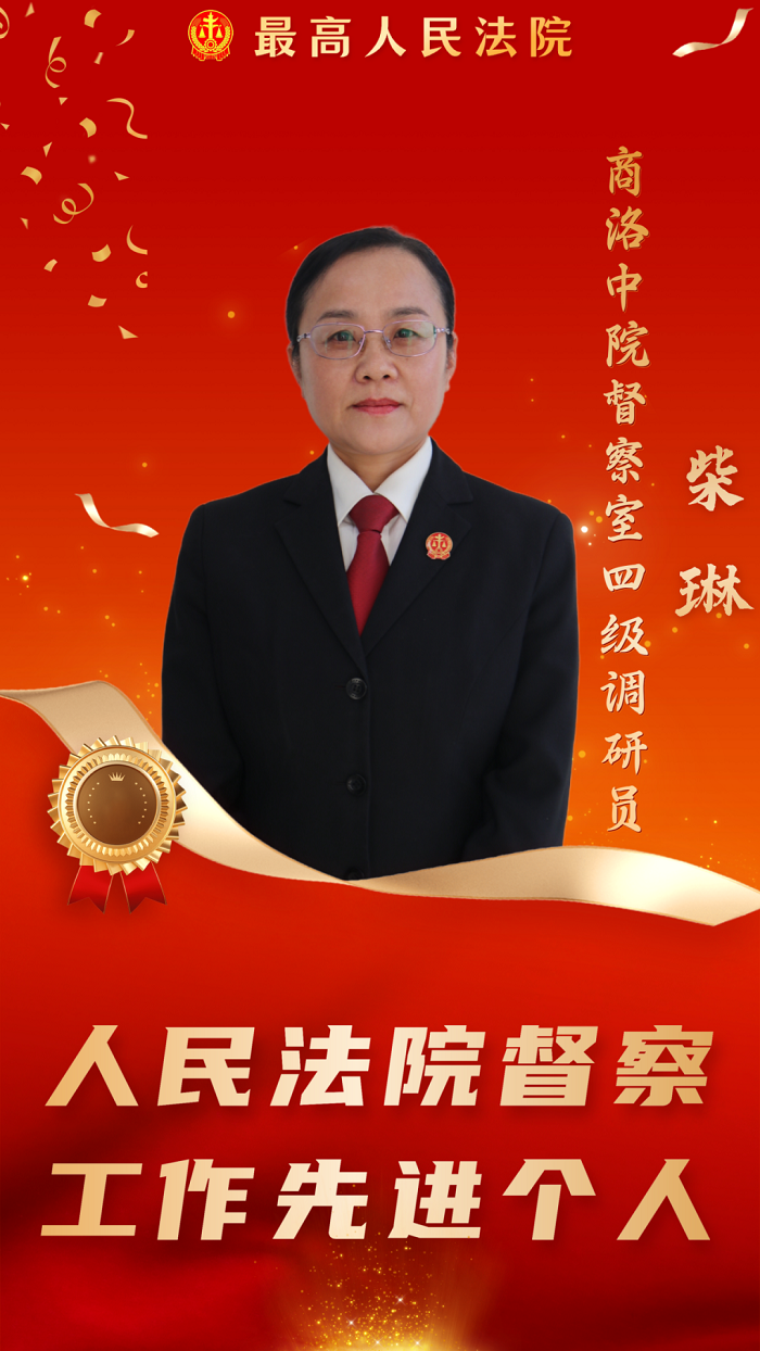 12月19日,最高人民法院發(fā)布《關(guān)于對人民法院督察工作先進(jìn)集體和先進(jìn)個人予以表揚(yáng)的通報(bào)》,商洛中院督察室四級調(diào)研員柴琳同志以突出的督察工作,獲得全國法院督察工作先進(jìn)個人。