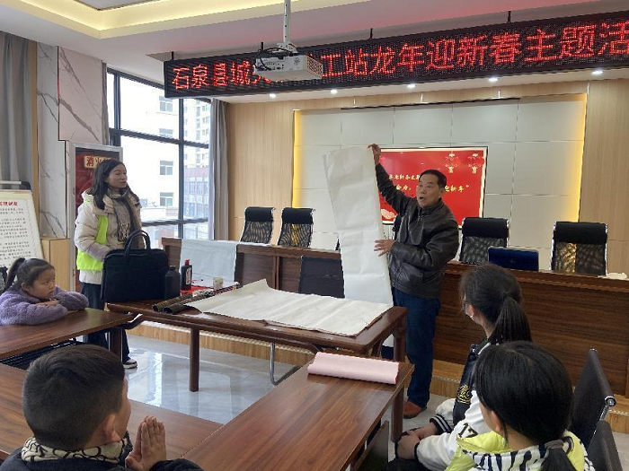 新西部網(wǎng)消息(張荔莎)福贈(zèng)春聯(lián)祈平安,奮筆揮毫迎新年。近日,在龍年新春來(lái)臨之際,安康市石泉縣城關(guān)鎮(zhèn)社工站聯(lián)合縣書(shū)法協(xié)會(huì)在長(zhǎng)安社區(qū)開(kāi)展了寫(xiě)春聯(lián)送祝福活動(dòng),旨在培養(yǎng)轄區(qū)兒童的興趣愛(ài)好,傳承中華民族的優(yōu)秀文化。