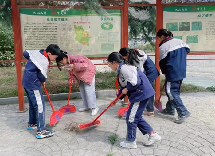 湛藍的天空下,鮮紅的隊旗迎風招展,映照著該校教師和少先隊員們燦爛的臉龐,孩子們按照事先分工,有序來到責任區(qū)域,手持火鉗、笤帚、鏟子、垃圾袋等勞動工具忙碌起來。孩子們發(fā)揚不怕苦、不怕累的精神,紛紛化身“小雷鋒”,將綠化帶、休閑廣場、河床上的白色垃圾清理出來,集中打包運往附近的垃圾箱。一個個小志愿者們爭先恐后,比誰眼睛尖,比誰動作快,比誰撿得最干凈,每完成一個地方的清潔,開心的笑容就浮現(xiàn)在孩子的臉上,經(jīng)過孩子們1個小時的辛勤勞動,校園周邊街道各個角落的環(huán)境面貌煥然一新,贏得了周邊群眾的連聲贊揚。