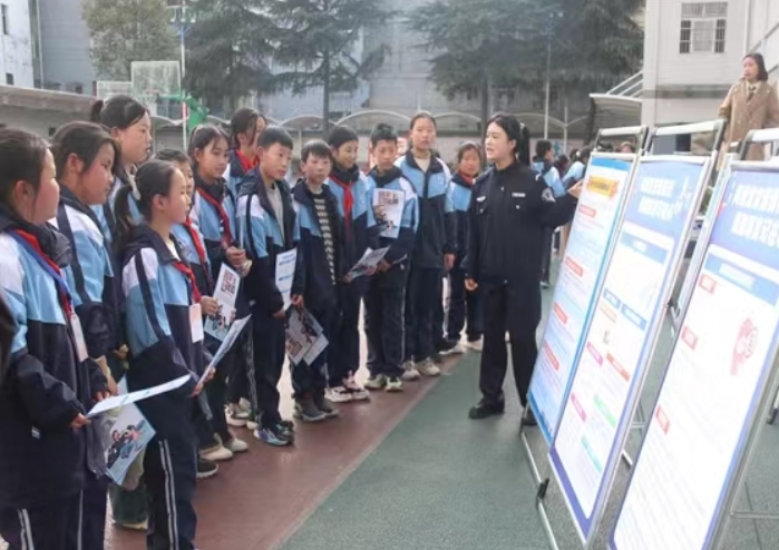 講座結(jié)束,部分學(xué)生還參觀了防電信網(wǎng)絡(luò)詐騙、禁毒宣傳展板,仔細(xì)傾聽(tīng)了公安人員的講解。