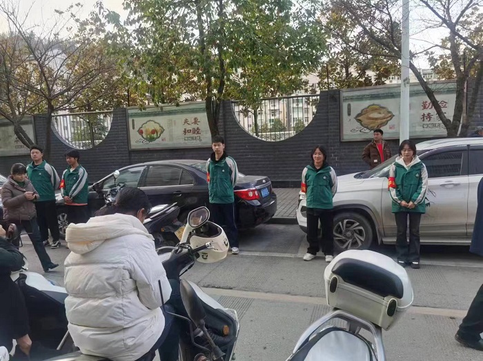 聯(lián)動(dòng)護(hù)學(xué)崗,當(dāng)好守護(hù)神。該校成立了由值勤領(lǐng)導(dǎo)帶班、值周老師、家長學(xué)生配班的護(hù)學(xué)隊(duì)。每天下午放學(xué)時(shí),值守在學(xué)校所在的花里路一條線,負(fù)責(zé)疏導(dǎo)家長有序停車,按線返程,勸導(dǎo)商販,遠(yuǎn)離通道,保證學(xué)生下學(xué)順暢安全。