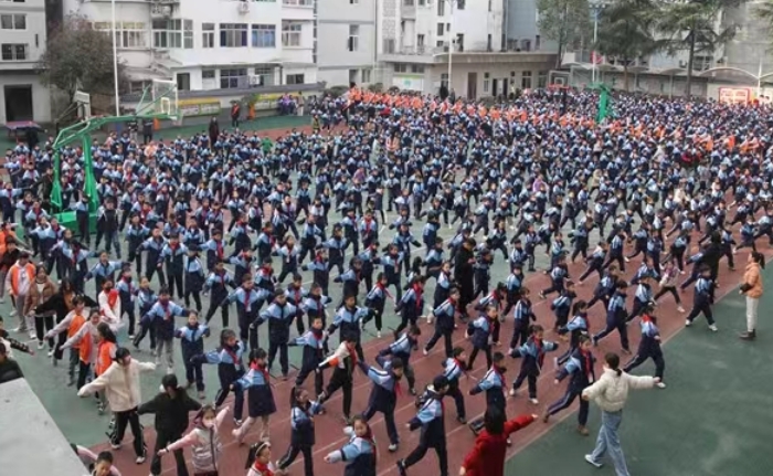 “兩操”,讓學(xué)生動起來。周二至周五,只要不下雨,8:30全校學(xué)生準(zhǔn)時到操場做第九套廣播體操。10:45,全校所有學(xué)生到操場集合,全校27個班級在跟班老師的帶領(lǐng)下分內(nèi)外圈在操場有序跑步,10分鐘的跑步讓學(xué)生微微出汗。