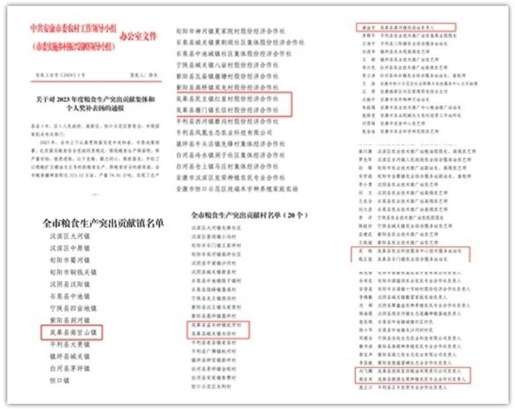 近日,中共安康市委農(nóng)村工作領(lǐng)導小組(市委實施鄉(xiāng)村振興戰(zhàn)略領(lǐng)導小組)下發(fā)《關(guān)于對2023年度糧食生產(chǎn)突出貢獻集體和個人獎補表揚的通報》,陜西省安康市嵐皋縣南宮山鎮(zhèn)榮獲“全市糧食生產(chǎn)突出貢獻鎮(zhèn)”;孟石嶺鎮(zhèn)武學村、城關(guān)鎮(zhèn)水田村榮獲“全市糧食生產(chǎn)突出貢獻村”;嵐皋縣農(nóng)業(yè)科技服務中心吳曉、石門鎮(zhèn)農(nóng)業(yè)綜合服務站錢正俊、藺河鎮(zhèn)農(nóng)業(yè)綜合服務站謝益宇榮獲“全市糧食生產(chǎn)技術(shù)服務突出貢獻個人”。同時,嵐皋縣西部皇田糧油有限責任公司負責人劉飛鵬和朝源瓜果種植農(nóng)民專業(yè)合作社負責人熊自有榮獲“全市糧食生產(chǎn)突出貢獻大戶”;民主鎮(zhèn)紅星村股份經(jīng)濟合作社、堰門鎮(zhèn)長征村股份經(jīng)濟合作社榮獲“全市撂荒地治理突出貢獻主體”。