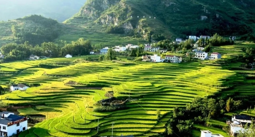 ▲漢陰縣鳳堰梯田鳥(niǎo)瞰圖