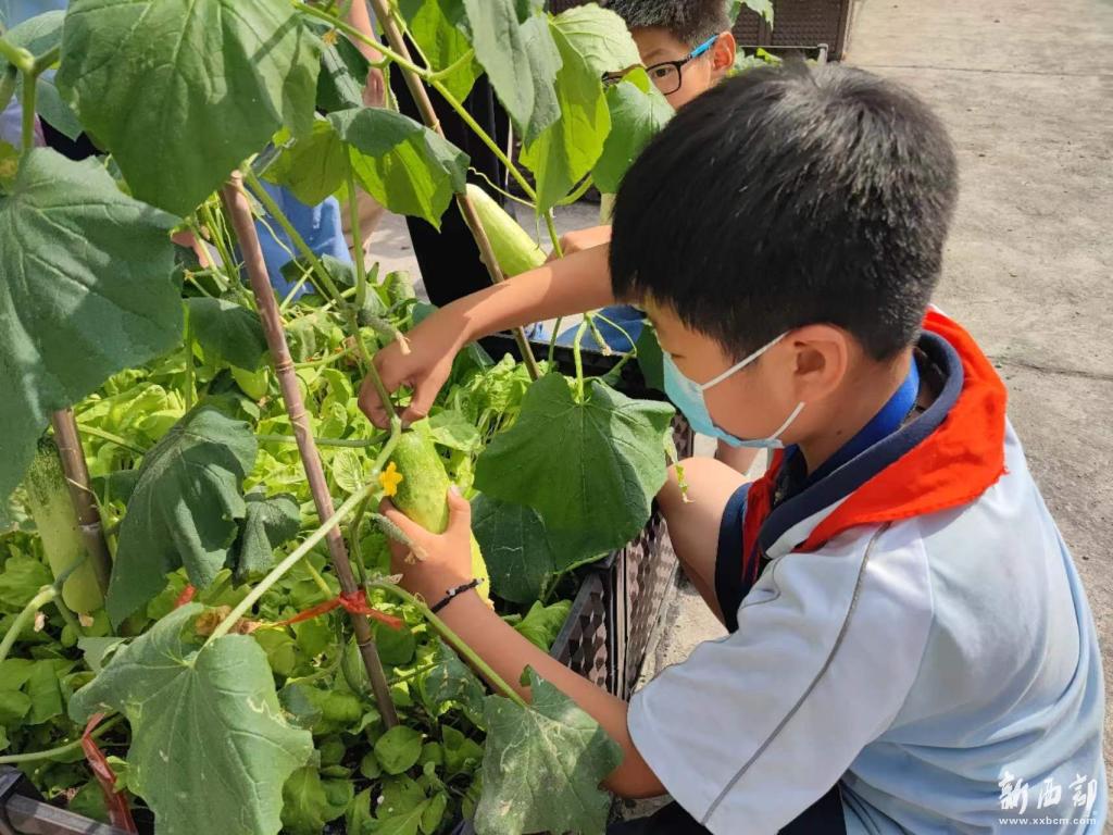 “本次采摘活動是在學(xué)生們經(jīng)歷了自己栽種、自己呵護、見證成長的不易后開展,對孩子們養(yǎng)成愛勞動、知感恩、懂珍惜的良好習慣起到了助推作用?!薄叭ツ暌詠恚瑢W(xué)校因擴建將勞動實踐基地轉(zhuǎn)移到了天臺,利用種植筐在打造出了別具一格的天臺學(xué)生樂園。雖然種植面積減少了,但開展勞動教育,培養(yǎng)學(xué)生的勞動技能,增添教育的生活氣息不能打折。從填土、耕種、養(yǎng)護到收獲,學(xué)生們?nèi)硇膮⑴c其中、體驗其中、感悟其中,在勞動中增長見識,收獲成長是學(xué)校的殷切希望。”漢陰縣恒達小學(xué)負責人說到。