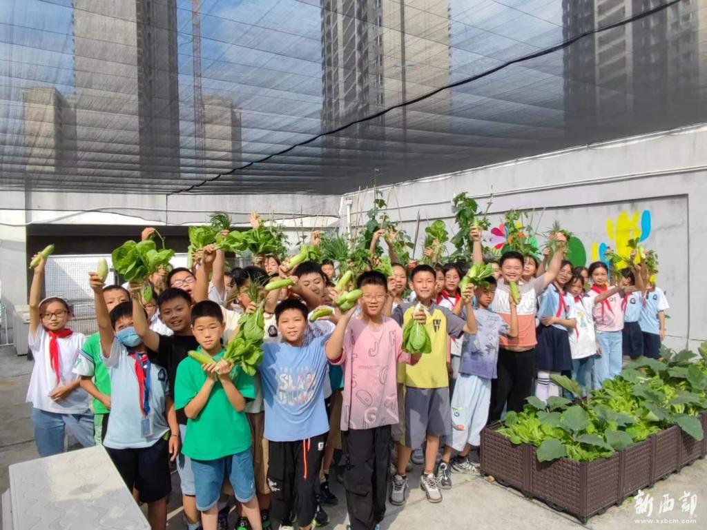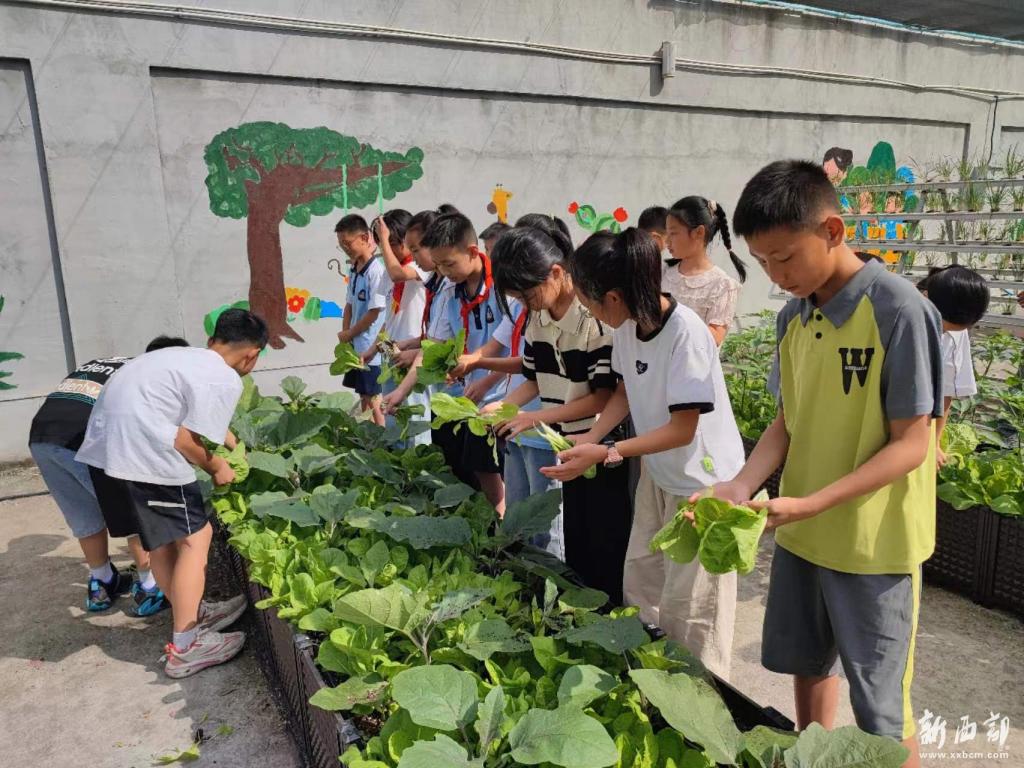 新西部網(wǎng)消息(通訊員 李忠銳)“我們的菜園豐收啦!”“真是太不容易了,它們終于成熟了,我們的辛苦與汗水沒有白費?!卑部凳袧h陰縣恒達小學(xué)天臺種植園內(nèi)傳來學(xué)生們的喜悅與感慨。