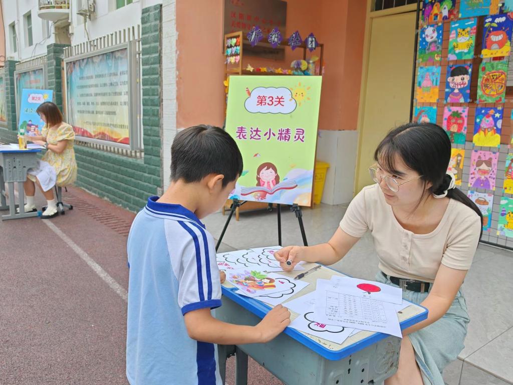 活動前,漢陰縣漢陽鎮(zhèn)中心小學在充分調研的基礎上,精細制定方案。本次測試活動依據一、二年級的學情,融趣味性、科學性、知識性為一體,緊扣各學科教材內容,聚焦閱讀、基礎計算、口語表達、勞動實踐等核心素養(yǎng),內容涵蓋語文、數學、音樂、體育等8個學科。共設置識字小先鋒、誦讀小明星、表達小精靈、口算小能手、識圖小勇士、解題小達人、我是小畫家、小小歌唱家以及運動小明星、生活小達人十個趣味闖關活動,全面考查學生的學習能力、表達能力、運用能力、思維能力以及實踐能力。每個孩子分別根據設定的關卡進行闖關,每闖過一關,“考官”根據學生表現用星星的顆數對孩子進行評價,最后根據各環(huán)節(jié)通關情況進行綜合評價。