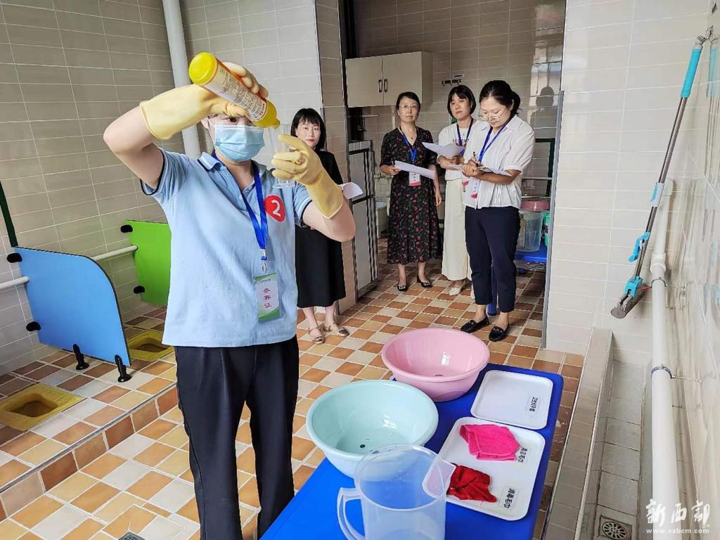 比賽當(dāng)天,參賽選手們在工作人員的引導(dǎo)下,現(xiàn)場抽取了比賽順序簽,通過線上通識知識考試和現(xiàn)場實(shí)操兩個環(huán)節(jié)展開賽事。在線上通識知識答題環(huán)節(jié),主考當(dāng)眾公示試題二維碼,選手統(tǒng)一用手機(jī)(無網(wǎng)絡(luò))掃碼進(jìn)行答題,需要在規(guī)定時間內(nèi)完成一系列與幼兒教育、衛(wèi)生保健相關(guān)的單選題、不定項(xiàng)選擇題、判斷題等。實(shí)操環(huán)節(jié)中,選手們分為AB兩個組,運(yùn)用小組循環(huán)賽制,在模擬的幼兒園環(huán)境中進(jìn)行入園、進(jìn)餐、衛(wèi)生消毒三個實(shí)操項(xiàng)目的角逐。他們嚴(yán)格按照操作流程和規(guī)范進(jìn)行操作,展現(xiàn)出了高超的保育技能和專業(yè)素養(yǎng)。評委們根據(jù)選手們的操作流程、操作規(guī)范、工作態(tài)度等方面進(jìn)行現(xiàn)場評分,確保了評分的公正性和客觀性。