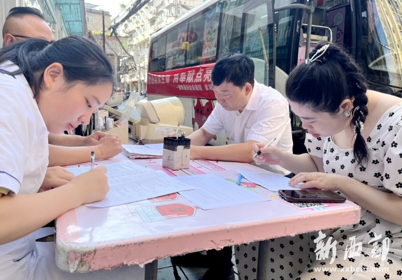 活動現場,紫陽縣婦幼保健院全體職工踴躍參與愛心獻血,他們依次進行健康問卷調查、測量血壓、初篩等。大家紛紛伸出手臂、挽起袖子、傳遞愛心。在他們的帶動下,過往群眾也紛紛加入到無償獻血的隊伍中來,慷慨地捐獻出自己的熱血。
