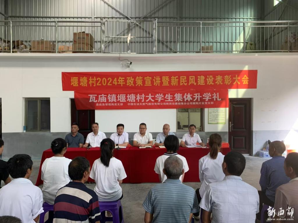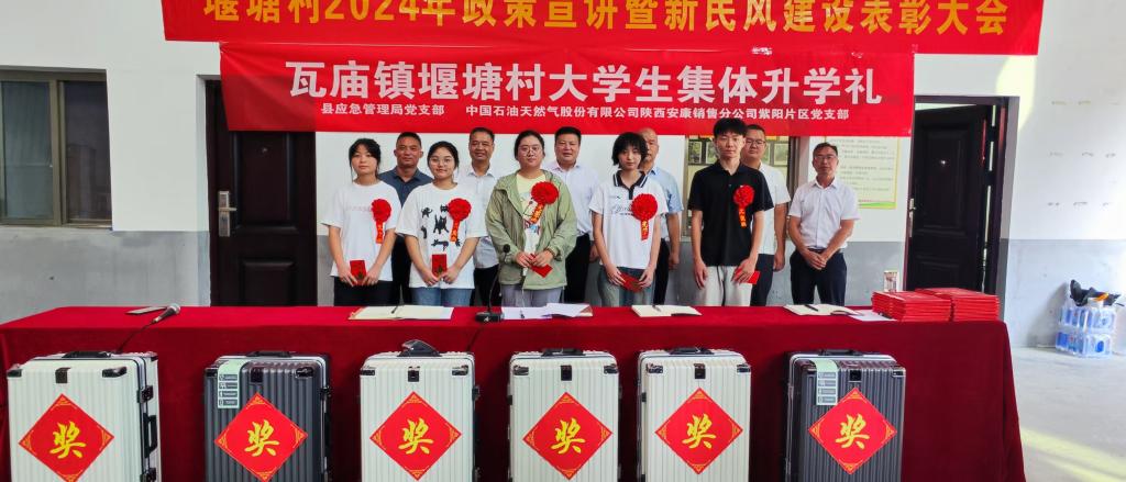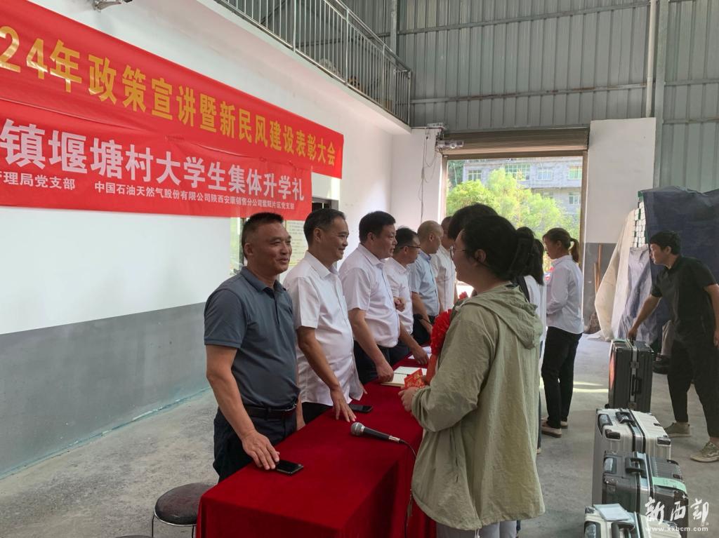 新西部網(wǎng)訊(通訊員陳健 記者張龍)記者從紫陽(yáng)縣獲悉,8月21日,紫陽(yáng)縣應(yīng)急局?jǐn)y手中石油安康銷售分公司紫陽(yáng)片區(qū)在應(yīng)急局包聯(lián)的瓦廟鎮(zhèn)堰塘村舉行“2024年集體升學(xué)禮”暨新民風(fēng)表彰活動(dòng)。