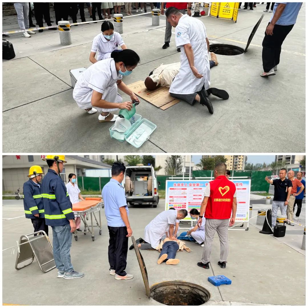“險情”發(fā)生后,漢陰縣婦幼保健院安全保衛(wèi)科立即啟動有限空間應急預案?,F(xiàn)場負責人對直接作業(yè)人員進行安全操作注意事項強調,作業(yè)人員在穿戴好防護裝備后攜帶作業(yè)設備進入檢查井開始檢修。幾分鐘后,作業(yè)人員突然“倒地”,同行人員在呼叫無應答、現(xiàn)場不明情況下,立即向作業(yè)現(xiàn)場監(jiān)護人報告,各應急救援小組立即按照有限空間安全事件應急預案開展緊急醫(yī)療救援……整個演練過程各小組密切配合、反應迅速,達到預期演練效果。